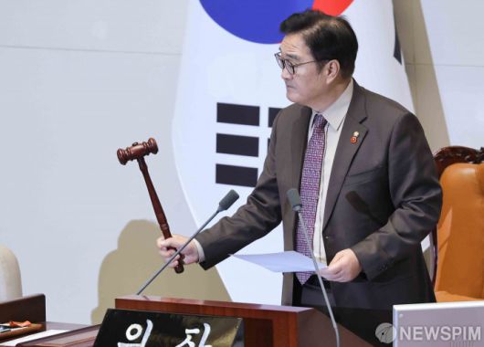 [서울=뉴스핌] 윤창빈 기자 = 우원식 국회의장이 16일 서울 여의도 국회에서 열린 본회의에서 의사봉을 두드리고 있다. 2026.01.16 pangbin@newspim.com