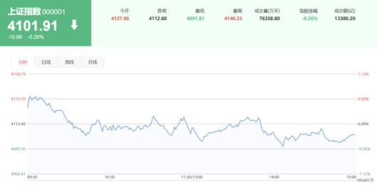 이날 상하이종합지수는 0.26% 하락한 4101.91, 선전성분지수는 0.18% 하락한 14281.08, 촹예반지수는 0.20% 하락한 3361.02로 각각 장을 마감했다.