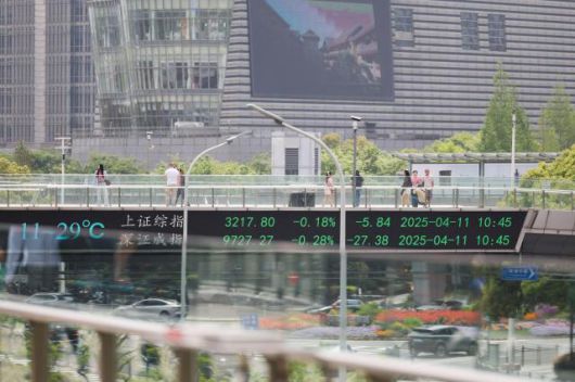 상하이 루자쭈이 금융지구 전광판에 상하이종합지수와 선전성분지수가 표시되고 있다. [사진=로이터·연합뉴스」 |