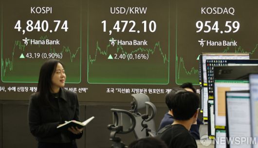 [서울=뉴스핌] 양윤모 기자 = 16일 오후 코스피가 전장 종가보다 43.19 포인트(0.90%) 상승하며 4840.74로, 코스닥은 3.43 포인트(0.36%) 상승한 954.59로 장을 마감한 가운데, 서울 중구 하나은행본점 딜링룸에서 직원들이 업무를 보고 있다.  서울외환시장에서 달러/원 환율은 전장 대비 2.40원 상승한 1472.10원에 주간거래를 마감했다. 2026.01.16 yym58@newspim.com