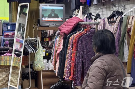 16일 울산 북구 호계공설시장 내 점포에서 시민들이 윤석열 전 대통령에 대한 1심 선고 공판 생중계를 보고 있다. 2026.1.16/뉴스1 ⓒ News1 김세은 기자 |