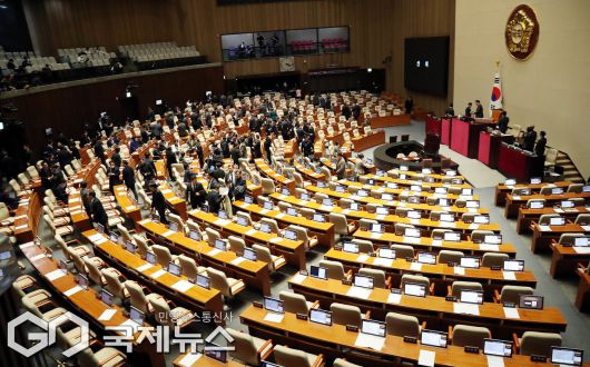 (서울=국제뉴스) 16일 서울 여의도 국회에서 열린 제431회 국회(임시회) 제1차 본회의에서 윤석열·김건희에 의한 내란·외환 및 국정농단 행위의 진상규명을 위한 특별검사 임명 등에 관한 법률안(2차 종합 특검법)이 재석 174인 중 찬성 172인, 반대 2인으로 가결된 후 여당 의원들이 본회의장을 나서고 있다./사진=이용우 기자