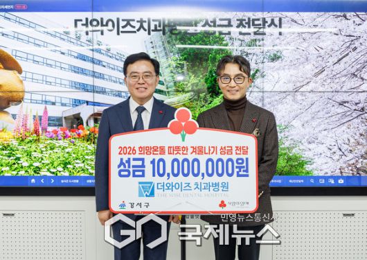 (서울=국제뉴스) 김서중 기자 = 서울 강서구(구청장 진교훈)는 16일(금) 화곡동 더와이즈치과병원(대표원장 임세웅)으로부터 이웃돕기 성금 1천만 원을 전달받았다.