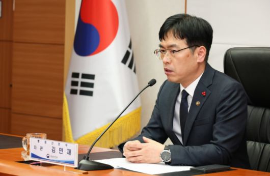 김민재 행정안전부 차관이 16일 오후 서울 종로구 정부서울청사에서 온라인 회의 시스템을 통해 열린 광주·전남 통합 관련 회의를 주재하며, 주요 추진 상황과 향후 일정 등을 논의하고 있다. /사진제공=행정안전부 |