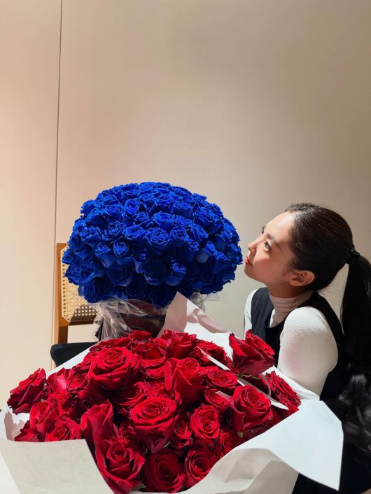 이와 함께 제니는 "0116. Love you 엄마♥♥"라는 글과 함께 빨간 장미와 파란 장미 다발을 공개했다.