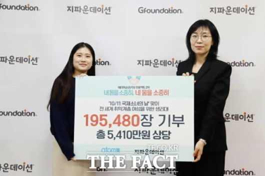 [더팩트ㅣ공주=김형중 기자] 애터미가 국내외 취약계층 여성을 위해 5400만 원 상당의 생리대 19만여 장을 기부했다.