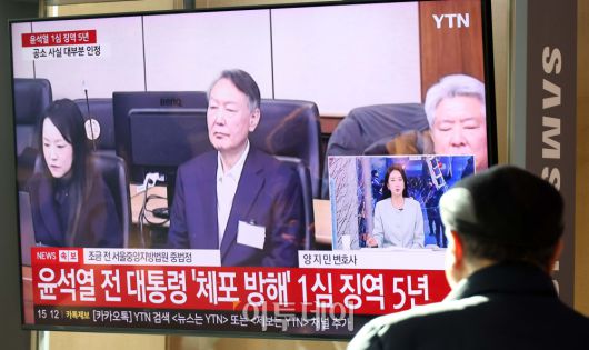 16일 서울역 대합실에서 시민들이 고위공직자범죄수사처(공수처)의 체포영장 집행 방해 등 혐의로 재판에 넘겨진 윤석열 전 대통령의 1심 선고 공판 생중계를 지켜보고 있다. 법원은 윤 전 대통령에게 징역 5년을 선고했다. 이번 선고는 내란 관련 사건 재판 중 처음으로 나오는 판결이다. 사진=고이란 기자 photoeran@ |