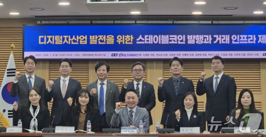 16일 서울 여의도 국회의사당에서 열린 '스테이블코인 발행과 거래 인프라 제도화 방향' 토론회 참석자들이 파이팅을 외치고 있다.2026.1.16./뉴스1 |