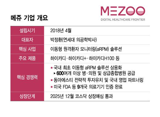 메쥬가 이동형 원격환자 모니터링(aRPM) 솔루션을 앞세워 코스닥 상장을 본격화 한다. 국내 최초로 상용화에 성공한 이동형 aRMP 솔루션 '하이카디'(HiCardi)의 개발사인 메쥬는 디지털 헬스케어 업계의 신흥강자란 입지와 파트너십 등을 앞세워 기업공개(IPO)에 나설 것으로 보인다.