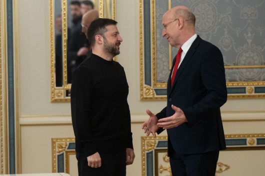 [키이우=AP/뉴시스] 볼로디미르 젤렌스키(왼쪽) 우크라이나 대통령이 9일 키이우 대통령궁에서 존 힐리 영국 국방장관과 대화하고 있다. 2026.01.16. |