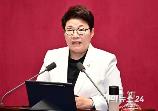 임이자 국민의힘 의원이 2일 오후 서울 여의도 국회에서 열린 본회의에서 '노란봉투법'(노동조합·노동관계조정법)에 반대하는 필리버스터(무제한 토론)를 하고 있다. [사진=곽영래 기자] |