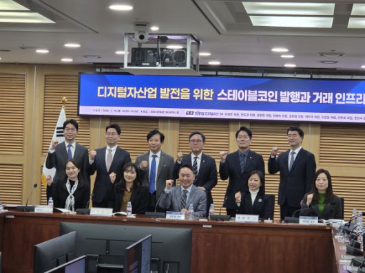 더불어민주당 디지털자산태스크포스(TF)는 16일 국회의원회관에서 '디지털산업 발전을 위한 스테이블코인 발행과 거래 인프라 제도화 방향'을 주제로 토론회를 열었다. [사진=유수민기자]더불어민주당이 원화 스테이블코인 제도화를 위한 디지털자산기본법을 상반기 중 국회 본회의에서 처리할 방침이다. 오는 20일 여당안을 최종 확정하고, 신속히 국회를 통과할 수 있도록 입법 절차에 속도를 내기로 했다.