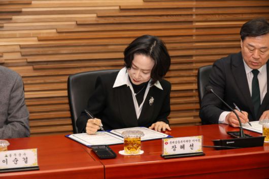협약서에 서명 중인 장혜선 롯데삼동복지재단 이사장. / 롯데장학재단 |