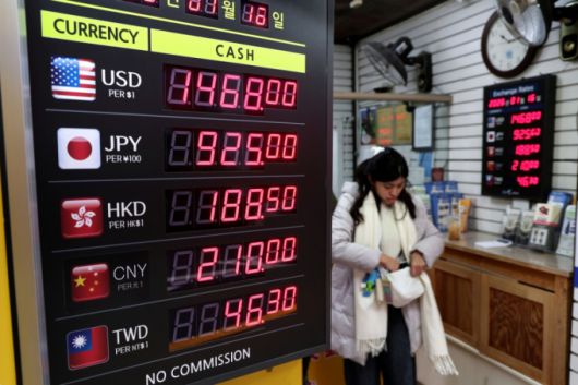 16일 서울 중구 명동 환전소 전광판에 환율 시세가 나오고 있다. 이날 서울 외환시장에서 원·달러 환율은 미국 고용지표 호조에 따른 달러 강세 영향으로 다시 1,470원 위로 상승했다. /사진=뉴스1 |