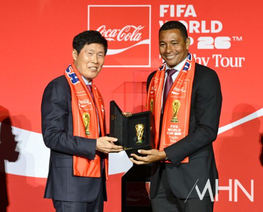 코카-콜라는 16일 서울 CGV용산아이파크몰에서 FIFA 월드컵 2026 우승국에 수여하는 오리지널 FIFA 월드컵 트로피를 공개하고, 한국 방문을 기념하는 기자회간담회를 열었다.