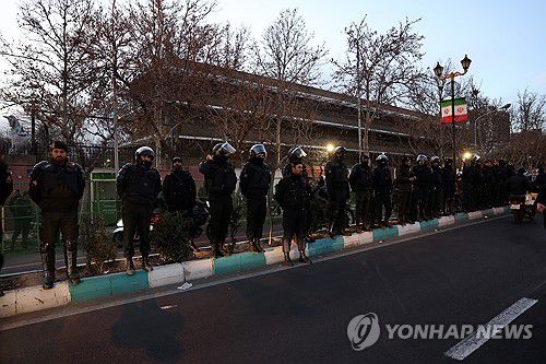 지난 14일(현지시간) 테헤란 시내에 배치된 경찰 |