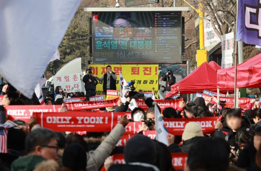 윤석열 전 대통령이 체포방해 혐의로 1심에서 징역 5년을 선고받은 가운데, 지지자들은 “짜여진 각본에 의한 것”이라며 선고 결과에 불복하는 목소리를 냈다.