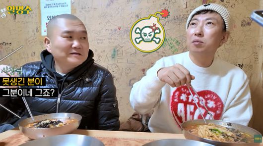 박명수는 "아이 안 먹어 나! (경호야) 너도 먹지 마!"라고 뒤끝 있는 말을 하더니 바로 먹방을 시작한 후 "아우 맛있네. 속이 확 풀린다"고 칭찬했다.
