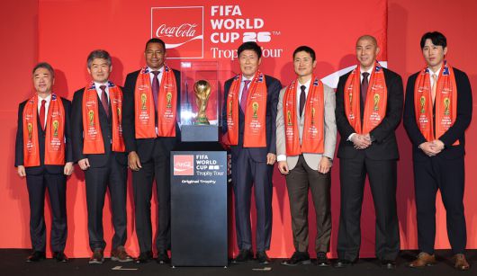 코카-콜라는 16일 서울 CGV용산아이파크몰에서 FIFA 월드컵 2026 우승국에게 수여되는 오리지널 FIFA 월드컵 트로피를 공개하고, 한국 방문을 기념하는 기자간담회를 진행했다. 이날 행사에는 차범근 전 감독을 비롯해 이영표 해설위원, 차두리 화성FC 감독, 구자철 디렉터, 그리고 지우베르투 시우바가 참석해 자리를 빛냈다.