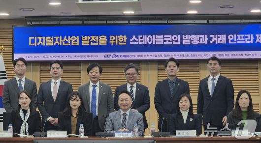 16일 서울 여의도 국회의사당에서 열린 '스테이블코인 발행과 거래 인프라 제도화 방향' 토론회 참석자들이 기념 촬영을 하고 있다.2026.1.16./뉴스1 |