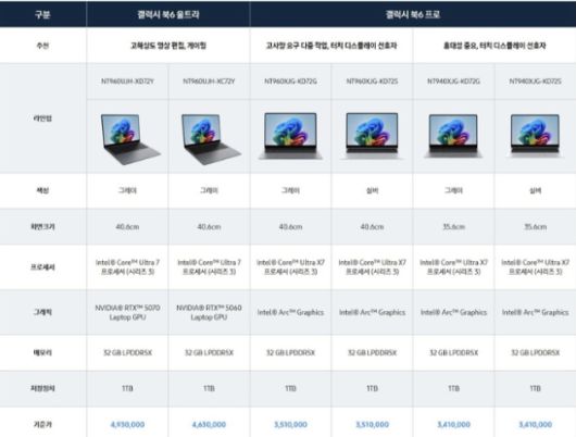 갤럭시 북6 프로는 341만원부터, 갤럭시 북6 프로 울트라는 463만원부터 판매된다. [사진=삼성전자] |