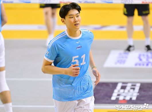 (엑스포츠뉴스 의정부, 김한준 기자) 16일 오후 경기도 의정부실내체육관에서 열린 '진에어 2025-2026 V-리그' KB손해보험과 대한항공의 경기, 대한항공 김관우가 서브를 준비하고 있다.김한준 기자 kowel@xportsnews.com
