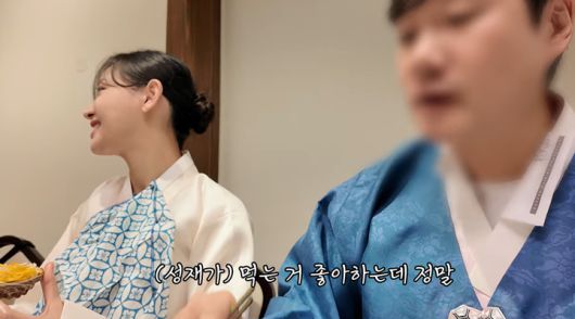 단아한 한복을 곱게 차려입은 김다영은 줄곧 웃으며 식사 자리의 분위기를 유하게 만들었다.