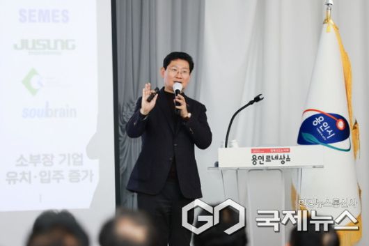 (용인=국제뉴스) 강정훈 기자 = 이상일 용인시장은 16일 시청 컨벤션홀에서 열린 기업인 간담회에 참석해 "우리가 목소리를 내는 것은 비단 용인만을 위한 목소리가 아니고, 이 나라의 핵심 주력 산업인 반도체산업의 발전과 국가 발전을 위해 내는 것"이라고 말했다.
