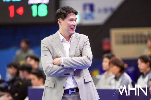 (MHN 수원, 박태성 기자) 16일 수원실내체육관에서 '2025-2026 V-리그 여자부' 현대건설과 정관장 경기가 열렸다. 정관장은 승점 18(6승 16패)로 7위 최하위를 기록 중이며 현대건설은 2위(승점 39)에 올라 있다. 현대건설 강성형 감독이 작전 지시를 내리고 있다. <저작권자 Copyright ⓒ MHN / 엠에이치앤 무단전재 및 재배포 금지>