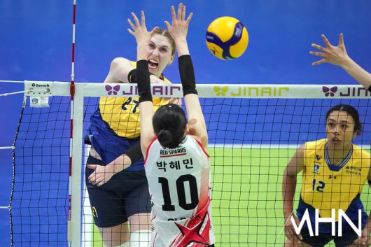 [mhn포토] 카리, 강한 속공으로 득점 성공