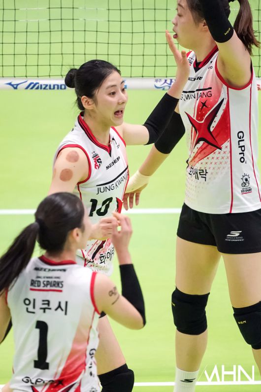 (MHN 수원, 박태성 기자) 16일 수원실내체육관에서 '2025-2026 V-리그 여자부' 현대건설과 정관장 경기가 열렸다.