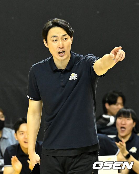 [OSEN=의정부, 이대선 기자] 16일 경기도 의정부시 경민대학교 체육관에서 ‘진에어 2025~2026 프로배구 V리그’ KB손해보험과 대한항공의 경기가 열렸다. 홈팀 KB손해보험은 12승 10패 승점 37로 3위, 방문팀 대한항공은 14승 7패 승점 42로 1위를 기록하고 있다. 2세트 KB손해보험 하현용 감독대행이 작전을 지시하고 있다. 2026.01.16 /sunday@osen.co.kr