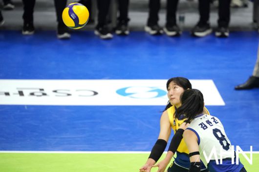 (MHN 수원, 박태성 기자) 16일 수원실내체육관에서 '2025-2026 V-리그 여자부' 현대건설과 정관장 경기가 열렸다. 정관장은 승점 18(6승 16패)로 7위 최하위를 기록 중이며 현대건설은 2위(승점 39)에 올라 있다. 현대건설 정지윤이 경기를 펼치고 있다. <저작권자 Copyright ⓒ MHN / 엠에이치앤 무단전재 및 재배포 금지>
