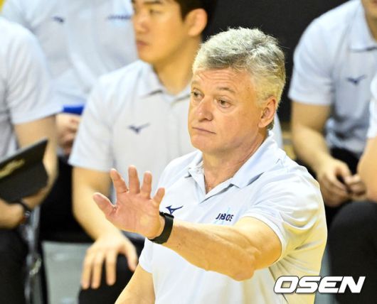 [OSEN=의정부, 이대선 기자] 16일 경기도 의정부시 경민대학교 체육관에서 ‘진에어 2025~2026 프로배구 V리그’ KB손해보험과 대한항공의 경기가 열렸다. 홈팀 KB손해보험은 12승 10패 승점 37로 3위, 방문팀 대한항공은 14승 7패 승점 42로 1위를 기록하고 있다. 1세트 대한항공 헤난 감독이 작전을 지시하고 있다. 2026.01.16 /sunday@osen.co.kr