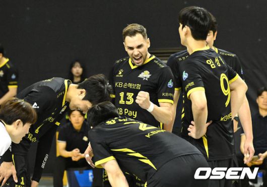 [OSEN=의정부, 이대선 기자] 16일 경기도 의정부시 경민대학교 체육관에서 ‘진에어 2025~2026 프로배구 V리그’ KB손해보험과 대한항공의 경기가 열렸다. 홈팀 KB손해보험은 12승 10패 승점 37로 3위, 방문팀 대한항공은 14승 7패 승점 42로 1위를 기록하고 있다. 2세트 KB손해보험 비예나가 득점 후 환호하고 있다. 2026.01.16 /sunday@osen.co.kr