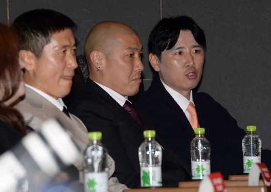 이영표 KBS 축구해설위원, 차두리 화성FC감독, 구자철 레드앤풋볼 아시아 스포츠 디렉터(왼쪽부터)가 16일 서울 용산구 CGV용산아이파크몰에서 열린 FIFA 월드컵 트로피 투어 미디어 간담회에 참석하고 있다.#김용학 기자 yhkim@sportsworldi.com ⓒ 스포츠월드