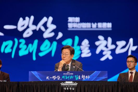 [서울=뉴스핌] 사진공동취재단 = 이재명 대통령이 지난 8일 서울 그랜드 하얏트 호텔에서 열린 방위산업의 날 토론회를 주재하고 있다. 2025.07.09 photo@newspim.com |
