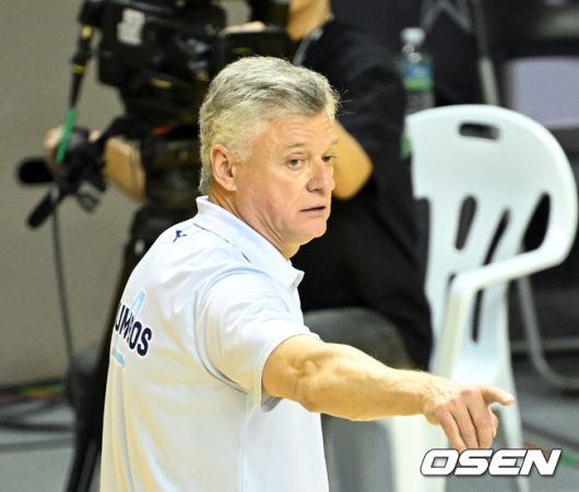 [OSEN=의정부, 이대선 기자] 16일 경기도 의정부시 경민대학교 체육관에서 ‘진에어 2025~2026 프로배구 V리그’ KB손해보험과 대한항공의 경기가 열렸다. 홈팀 KB손해보험은 12승 10패 승점 37로 3위, 방문팀 대한항공은 14승 7패 승점 42로 1위를 기록하고 있다. 1세트 대한항공 헤난 감독이 작전을 지시하고 있다. 2026.01.16 /sunday@osen.co.kr
