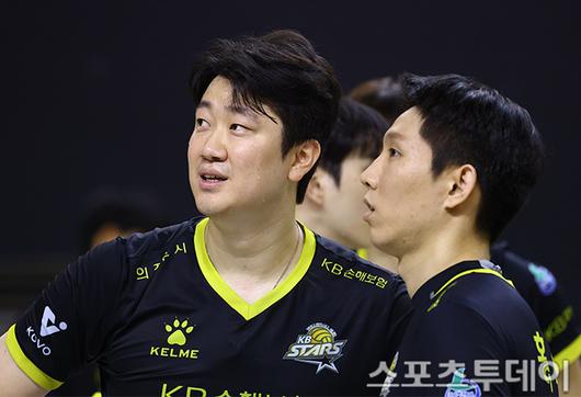 [의정부(경기)=스포츠투데이 팽현준 기자] 16일 경기도 의정부 경민대학교 체육관에서 열린 V리그 남자부 KB손해보험과 대한항공의 경기, KB손해보험 나경복과 홍상혁이 비디오판독을 지켜보고 있다. 2026.01.16. [스포츠투데이 팽현준 기자 sports@stoo.com]