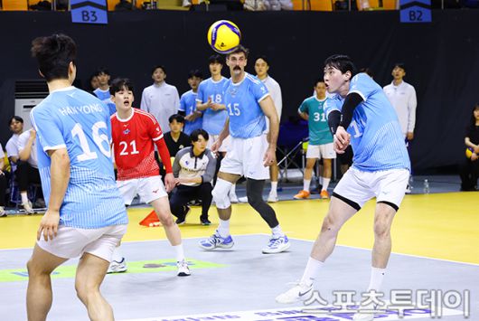 [의정부(경기)=스포츠투데이 팽현준 기자] 16일 경기도 의정부 경민대학교 체육관에서 열린 V리그 남자부 KB손해보험과 대한항공의 경기, 대한항공 김선호가 리시브하고 있다. 2026.01.16. [스포츠투데이 팽현준 기자 sports@stoo.com]