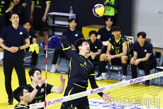 [의정부(경기)=스포츠투데이 팽현준 기자] 16일 경기도 의정부 경민대학교 체육관에서 열린 V리그 남자부 KB손해보험과 대한항공의 경기, KB손해보험 차영석이 공격하고 있다. 2026.01.16. [스포츠투데이 팽현준 기자 sports@stoo.com]