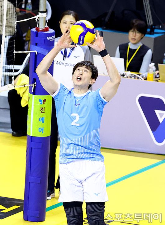 [의정부(경기)=스포츠투데이 팽현준 기자] 16일 경기도 의정부 경민대학교 체육관에서 열린 V리그 남자부 KB손해보험과 대한항공의 경기, 대한항공 한선수가 토스하고 있다. 2026.01.16. [스포츠투데이 팽현준 기자 sports@stoo.com]