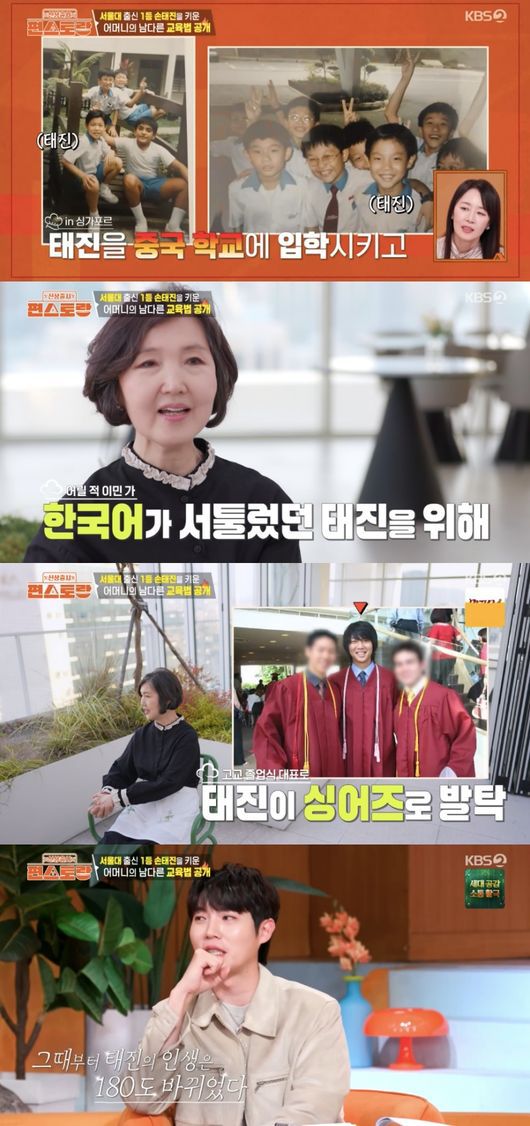 한편, 손태진 어머니는 서울대 성악과를 보낸 남다른 교육법을 공개했다. 어머니는 “영어도 중요하지만 중국어 가르치고 싶은 마음에 중국어 학교를 보냈다. 또 영어, 중국어를 잘해야 하지만 한국어도 잘해야 하지 않을까 싶어서 한국어 학교도 보냈다”라고 설명했다.