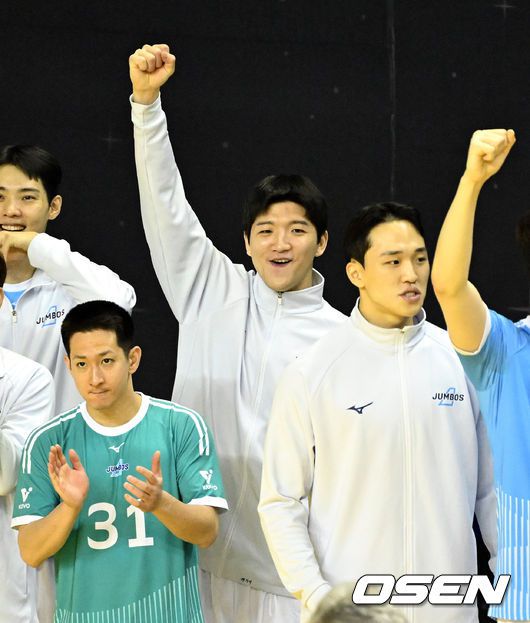 [OSEN=의정부, 이대선 기자] 16일 경기도 의정부시 경민대학교 체육관에서 ‘진에어 2025~2026 프로배구 V리그’ KB손해보험과 대한항공의 경기가 열렸다. 홈팀 KB손해보험은 12승 10패 승점 37로 3위, 방문팀 대한항공은 14승 7패 승점 42로 1위를 기록하고 있다. 2세트 대한항공 정지석이 응원을 하고 있다. 2026.01.16 /sunday@osen.co.kr
