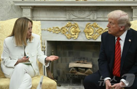 도널드 트럼프 미국 대통령이 17일(현지시간) 워싱턴 백악관에서 조르자 멜로니 이탈리아 총리와 회담을 하고 있다. 2025.04.18 ⓒ AFP=뉴스1 |