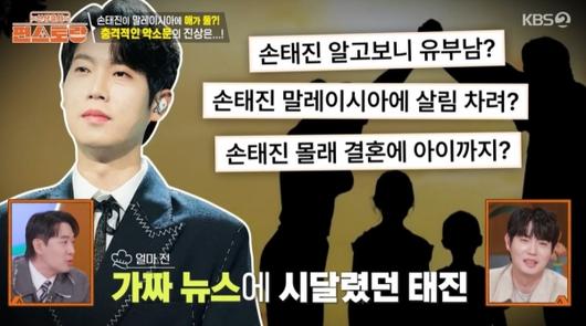 16일 방송된 KBS2 '신상출시 편스토랑'에서 손태진이 이미 말레이시아에서 결혼을 했으며 자녀가 2명이나 있다는 내용의 가짜 뉴스가 언급됐다.