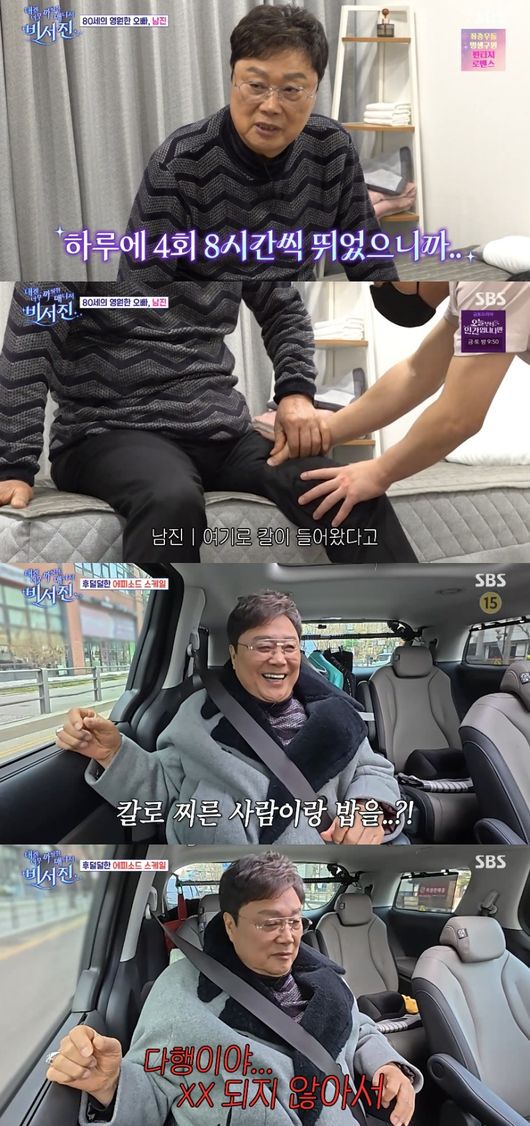한창 마사지 받던 중 남진은 마사지사에게 “내가 왼쪽 다리를 다쳤다. 옛날에 연장을 맞았다. (허벅지) 여기로 칼이 들어왔다. 뒤에서 맞고 앞으로 튀어 나왔다”라고 아찔했던 사고를 떠올렸다.