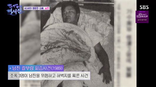 이는 남진 칼부림 피습사건으로, 1989년 조폭 3명이 남진을 위협하고 허벅지를 찌른 사건이었다. 남진은 “조금만 1mm만 빗나갔어도 불구였다”라고 덤덤하게 말했다.