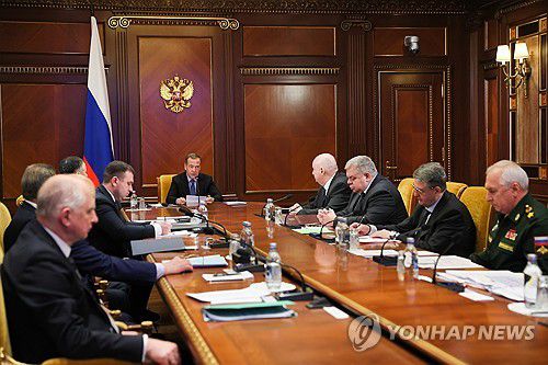 회의 주재하는 드미트리 메드베데프 러시아 국가안보회의 부의장(가운데) |