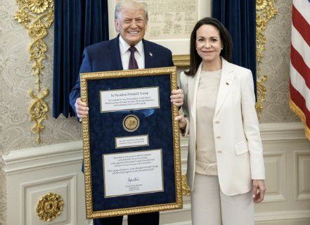 하지만 트럼프 대통령은 메달을 받은 뒤 소셜미디어 트루스소셜에 "마리아가 자신이 한 일에 대한 노벨평화상을 나에게 줬다. 상호 존중의 훌륭한 제스처"라고 치켜세우는 데 그쳤을 뿐 마차도가 원하던 정치적 지지표명은 하지 않았다.